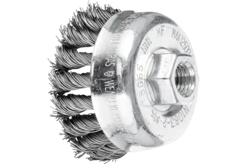 Knot Wire Cup Brush PSF 2-3/4″ Dia. .020 Carbon Steel M10x1.25 Thread Retail