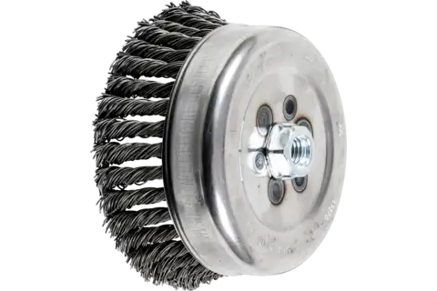 Knot Wire Cup Brush 6″ Dia. .035 Carbon Steel 5/8-11″ Thread