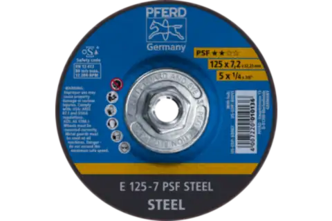 Grinding Wheel, 5″ x 1/4 x 5/8-11, PSF STEEL, T27, Aluminum oxide