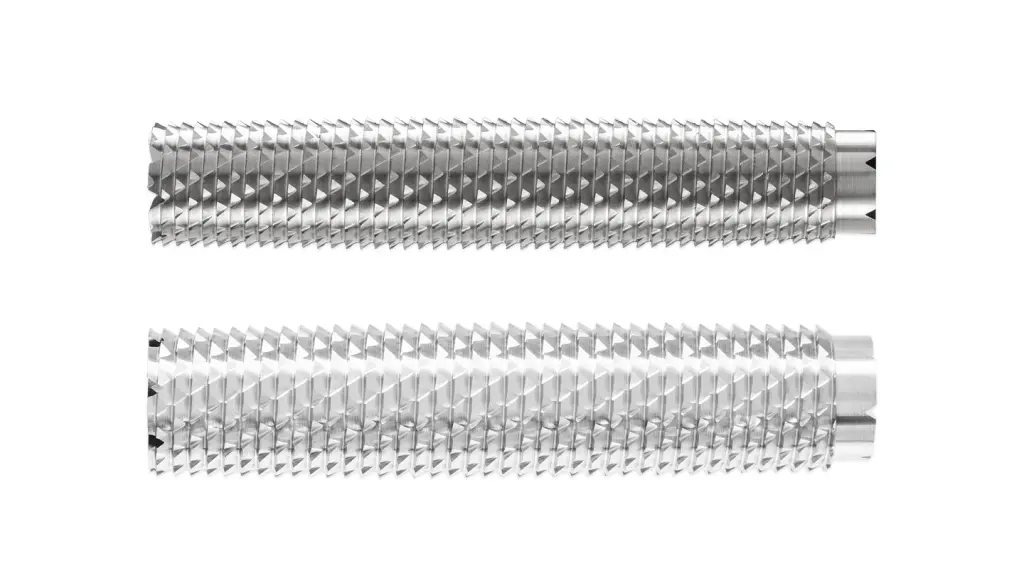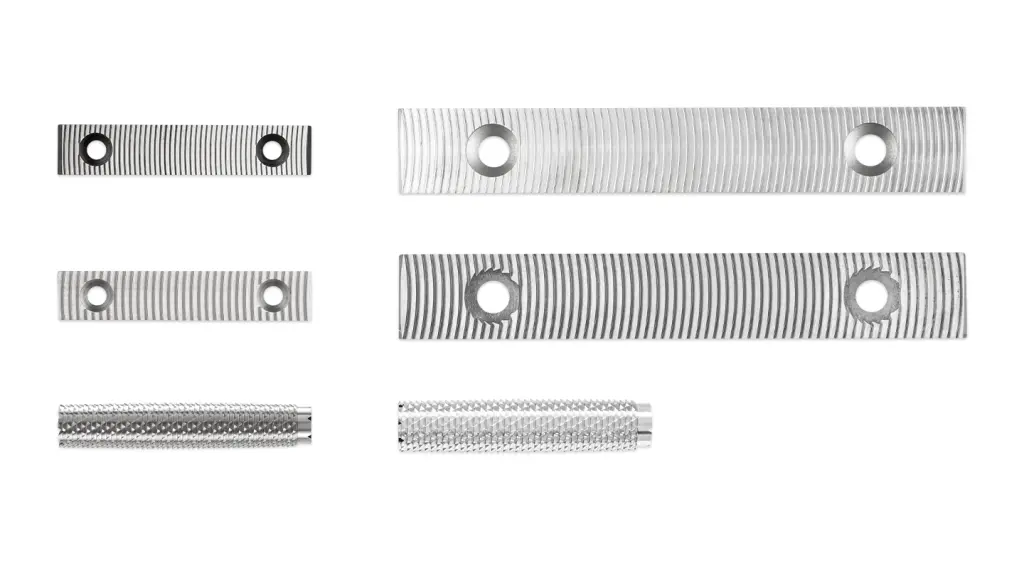 Tungsten carbide files with chip breakers are convex in the transverse direction and cut on two sides. One side has chip breakers. The version with chip breakers enables high stock removal .