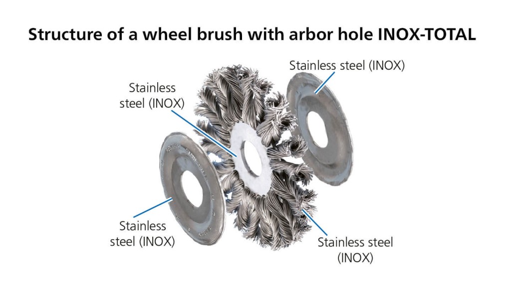 The INOX-TOTAL brushes are ideal for brushing work such as deburring, cleaning, and removing heat discolouration and oxide layers.