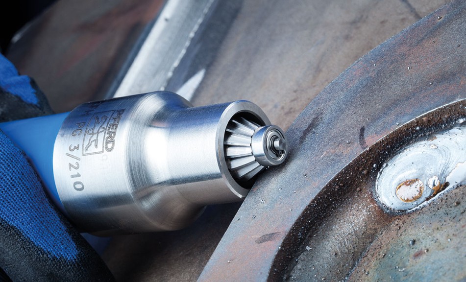 - If possible, use EDGE cut burrs with the PFERD TOOLS compressed-air straight grinder PG 3/210 with matching guide sleeve EFH PG 3/210 (see the info box on the right).