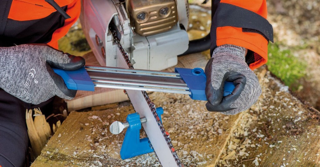 The CHAIN SHARP CS-X chain saw sharpener provides a fixed angle and is the one-step solution for perfectly sharpening saw chains by hand.